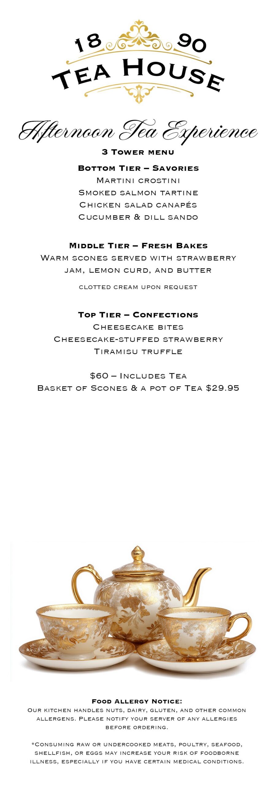 Every detail is chosen to bring you a one-of-a-kind Tea House experience. Whether you’re here for a light bite, a relaxing afternoon tea, or a special gathering, our menu is crafted to make your visit memorable.