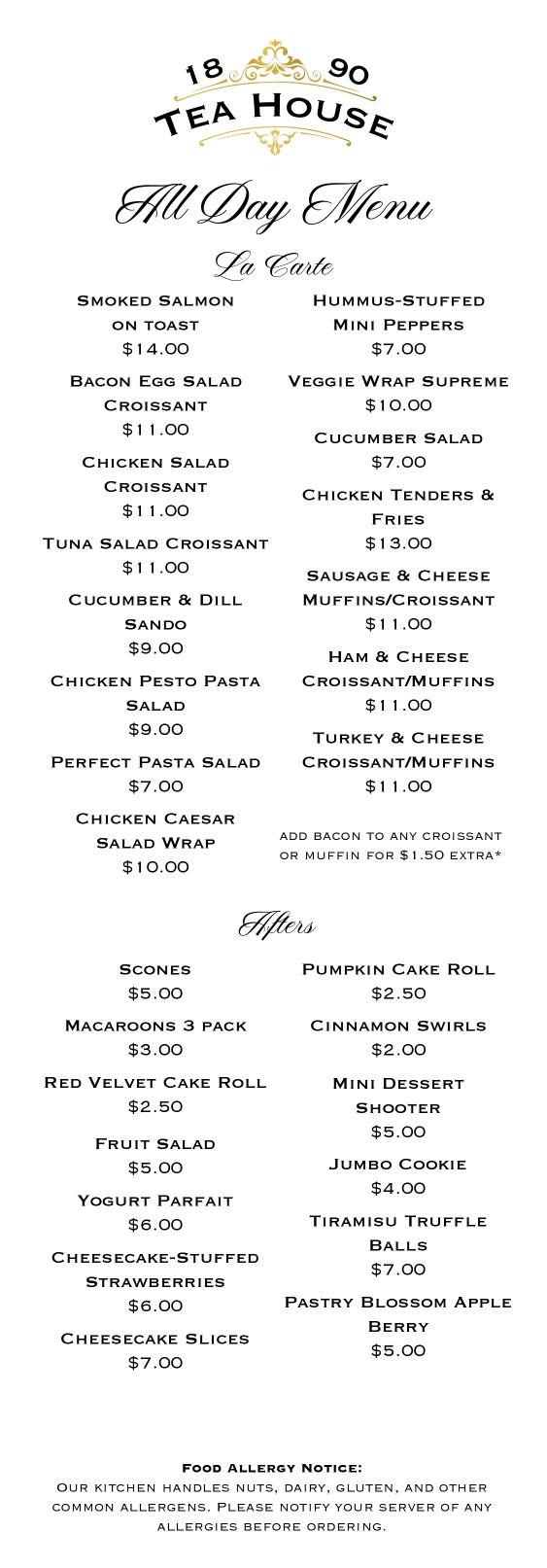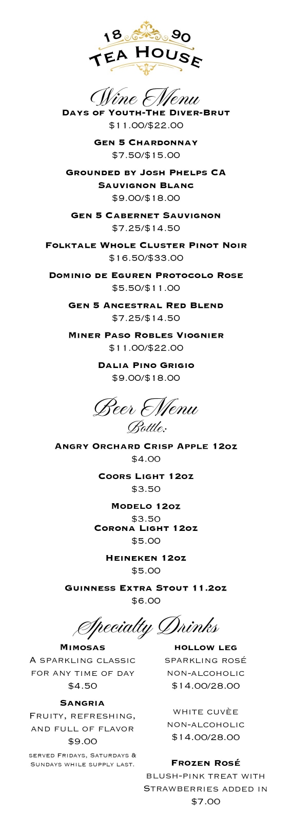 At 1890 Tea House, our menus are crafted for you to savor and discover. Take your time exploring our thoughtfully selected offerings.